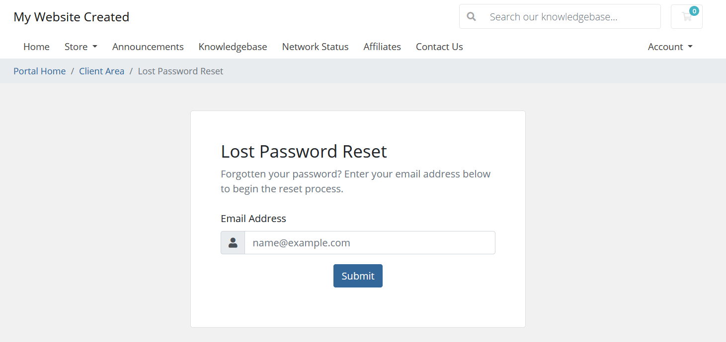 Enter the email address associated with your All-Inclusive Website Package to begin the reset process
